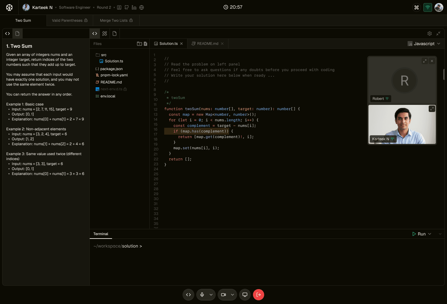 Conduct all types of technical interviews in one platform - human, AI-assisted or AI-conducted. Run your hiring process like a well-oiled system.