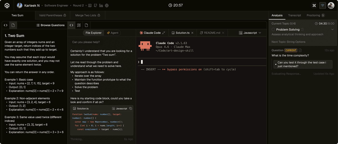 ☉ Runs on same Interview Canvas - proctored and recorded